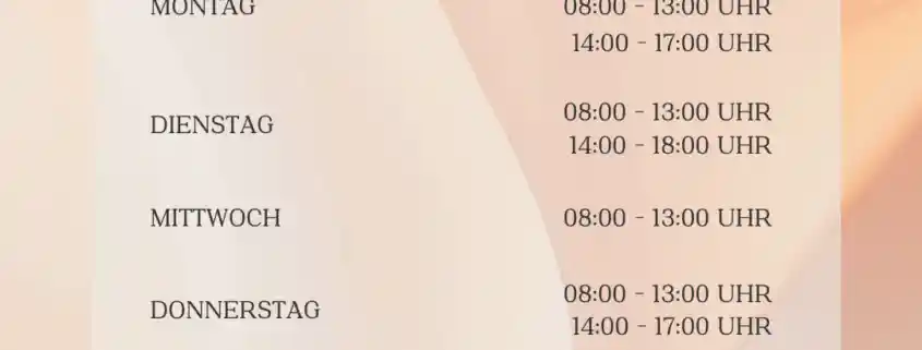 Montag bis Freitag 8-13 Uhr ^ Montag und Donnerstag 14-17 Uhr ^ Dienstag 14-18 Uhr